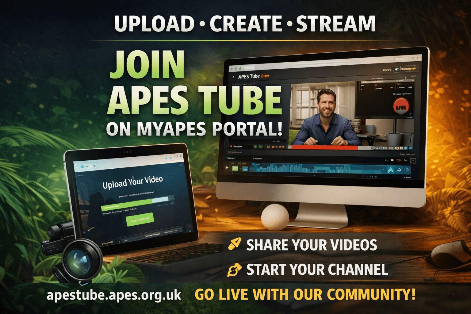 APES Tube is a dedicated video platform powered by our APES ecosystem and available here: https://apestube.apes.org.uk/home.